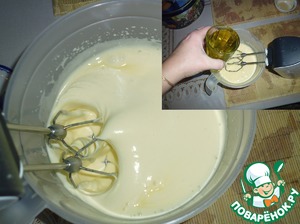 Частями вливаем подсолнечное масло, продолжая взбивать до однородного состояния.