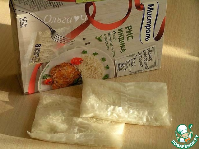 Вскипятить воду для риса, опустить пакетики и варить до готовности.