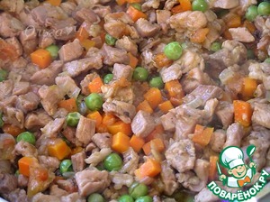 • Добавить горошек, готовить еще около 5 минут. За 2 минуты до окончания приготовления добавить сахар и перемешать.