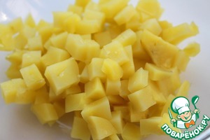 Картофель почистить, отварить в подсоленной воде до готовности, нарезать кубиками.
