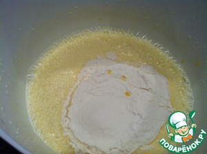 Лопаткой или венчиком вмешать муку ( не очень интенсивно ).