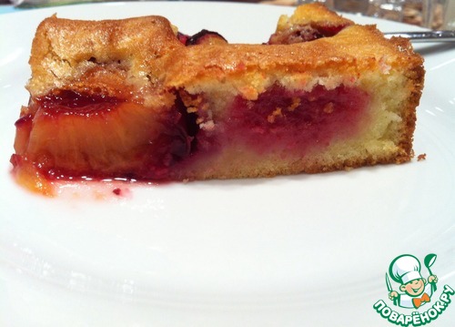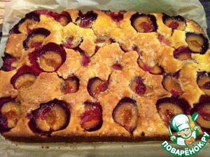 Очень нежный и сочный пирог доставит удовольствие любителям фруктов. Небольшое количество теста, в сравнении с начинкой, лишь добавляет прелести сливам.