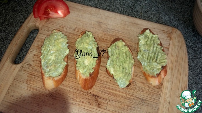 Тосты хорошенько намазать гуакамоле.