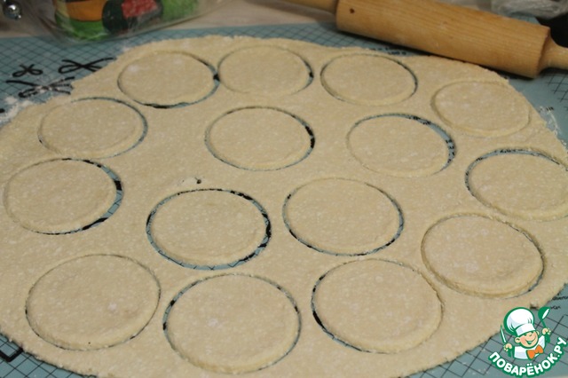 Раскатываем его в тонкий пласт и выдавливаем кругляши. -