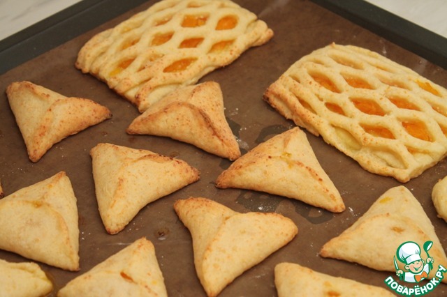 Сначала замешиваем тесто. Если творог у Вас сухой, добавьте немного сметаны, можно сливок или даже молока. Смешиваем размягченное сливочное масло, творог и сахар. Добавляем соду, гашенную уксусом. И заводим тесто, добавляя муку. Ставим готовое тесто в холодильник на 30 минут.