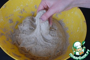 Добавить 144 г ржаной муки и замесить густое тесто.