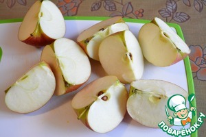 Займемся начинкой. Для этого яблоки моем и чистим. Режем небольшими кубиками.