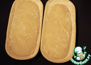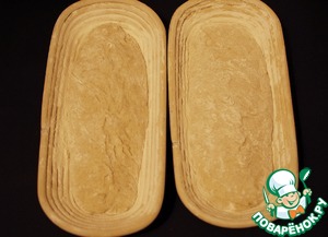 После последнего сложения дайте тесту отдохнуть 15-20 минут. Сформируйте 2 хлеба и уложите швом вверх в корзинки, натертые мукой.