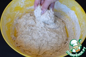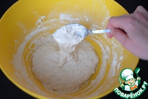 - Мука цельнозерновая (75 г - пшеничной, 30 г - ржаной) — 105 г
