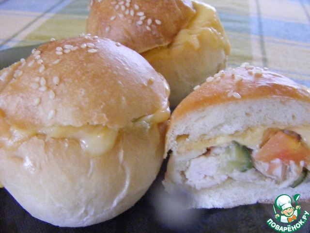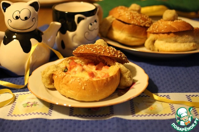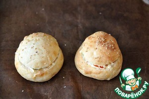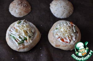 Можете накрыть булочки сверху "крышечками", а можете оставить открытыми, чтобы сыр подрумянился при запекании.