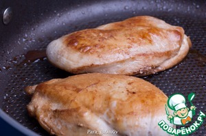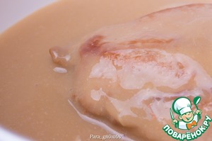 5. Для второго варианта смешать ингредиенты в двойном количестве, выложить в соус грудку и проварить в соусе несколько минут (3-5). Затем вынуть грудку из соуса и загустить его при необходимости с помощью крахмала, как описано выше. В обоих случаях получается вкусно.