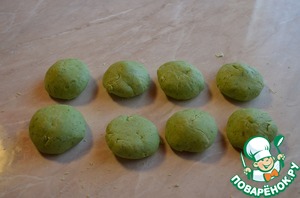 Тесто нужно разделить на 8 равных частей. Скатать в шарики ( получится 8 коржей)