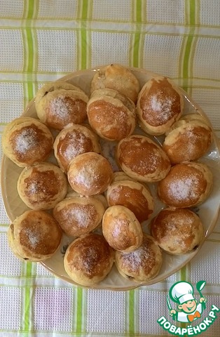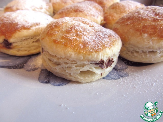 Ставим выпекаться на 25 мин. при t=180 градусов. Из некоторых пышечек вытекло немного шоколада, но, по-моему, их это только украсило. Перед подачей украсить сахарной пудрой. Приятного чаепития! :) Можно попробовать сделать из песочного теста.