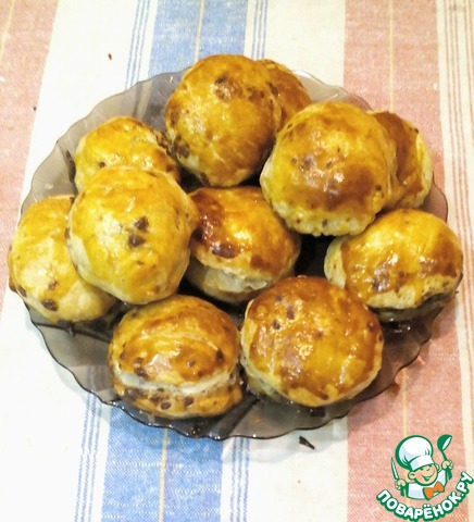 Вот, что получилось у меня. Многие шли в небольшой нахлест, но когда они поднялись в духовке, это стало незаметно. Пышечки можно смазать желтком.