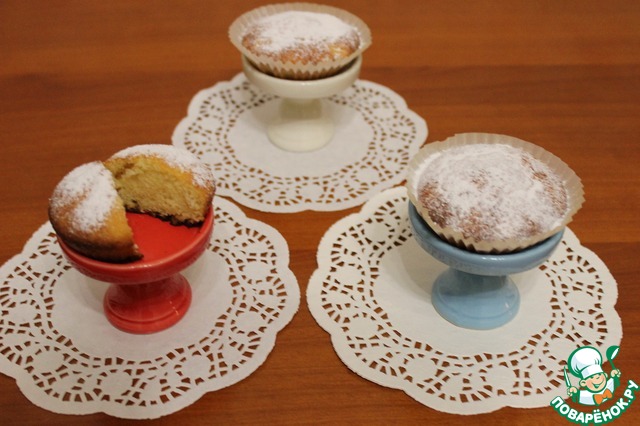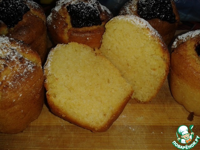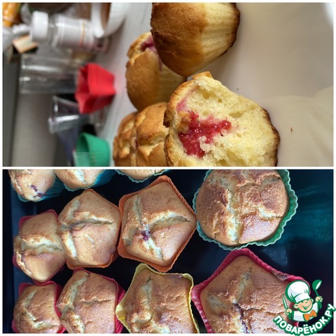 Предлагаю рецепт замечательных кексов. Этот рецепт можно взять за основу и разнообразить различными добавками — изюм, орехи, различные ягоды. Я добавила кокосовую стружку в тесто. Часть кексов наполнила замороженной красной смородиной, часть - джемом.