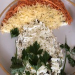 Салат восхитительный! В нижний слой добавила морковки и 1 зубчик чеснока и пережарила вместе с луком и шампиньонами. Остальное всё по рецепту. Готовила 2 салата (на ужин и мужу на работу). Один салатик за ужином исчез ооочень быстро!