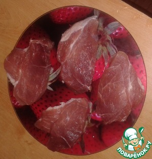 • Разрезаем мясо на тонкие пластины (около 1 см толщиной).