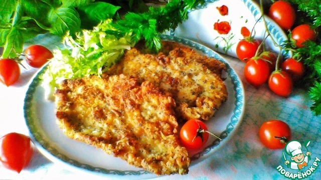 В сковороде раскалить растительное масло и жарить запанированные отбивные до золотистой корочки по 3-5 минут с каждой стороны