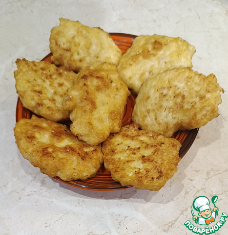 выкладывать куриную массу ложкой, обжаривать с двух сторон до румяной корочки. -