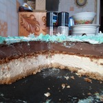 Во-первых - безумно горько, причем хорошо, что я поняла это в тот момент, когда еще можно было добавить побольше сахара. По-моему пришлось увеличить где-то в полтора раза количество, но даже после этого все пробовавшие говорили, что торт слишком шоколадный и горький.