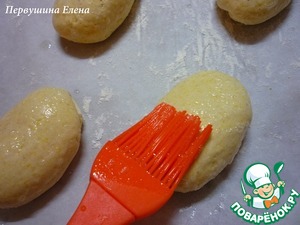 смазать кисточкой булочки.