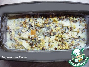 Посыпать поверх хлеба грецкими орехами, оставив лишь 1/4 часть.