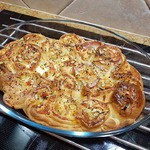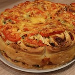 Эта пицца приготовлена не совсем традиционным способом. Начинка для нее закручивается в рулет из теста, нарезается на кусочки и выкладывается в форму в виде розочек и выпекается. Получается очень вкусный и сочный пирог-пицца.