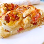 Украсить сверху кружочками помидоров, посыпать оставшимся сыром и выпекать 40 минут при температуре 180 градусов (ориентируйтесь на свою духовку).