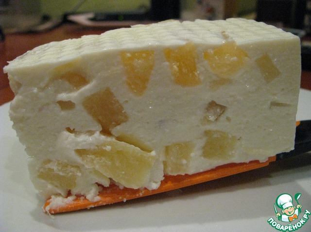 Ананасы перемешать с творожной массой и всё вылить в форму. Поставить в холодильник для застывания. Застывает быстро в течении часа.