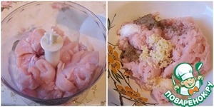 • Куриное филе вымыть, обсушить, нарезать на небольшие кусочки, затем измельчить при помощи блендера или мясорубки.