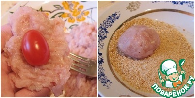 Рецепт «Куриные фрикадельки, фаршированные помидорами черри»: