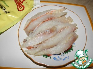 Филе рыбы, нарезать полосками, посолить, поперчить по вкусу, полить немного лимоном