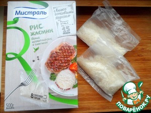 Отварить в подсоленной воде 4 пакетика риса Жасмин ТМ "Мистраль" по инструкции на упаковке.