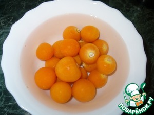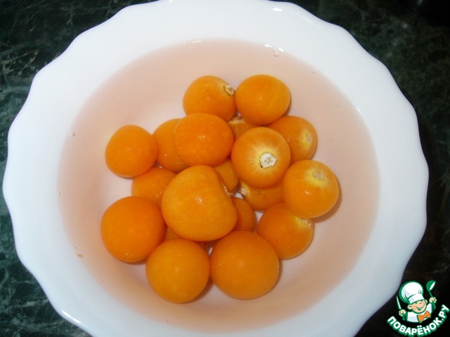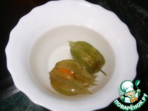 Физалис очистить, залить кипятком на несколько минут, после чего промыть и вытереть насухо бумажным полотенцем