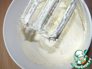 Сливки взбить с 2 ст. л. сахара и ванилином до мягких пиков
