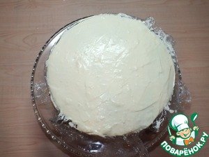 Закрываем оставшимся кремом. Убираем в холодильник на 2-3 часа (я убирала на ночь)