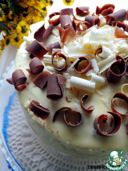 Покрыть торт глазурью. Убрать в холод до застывания глазури. Торт можно украсить по вашему усмотрению. Я украсила шоколадной стружкой.