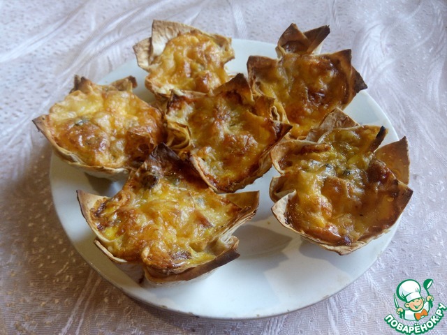 Рецепт «Горячая закуска в корзиночках из лаваша»: