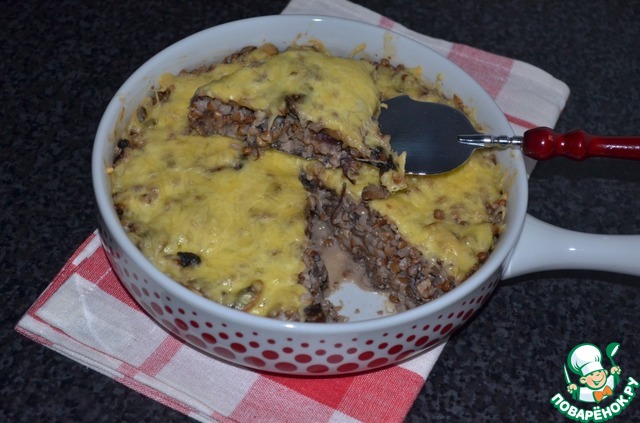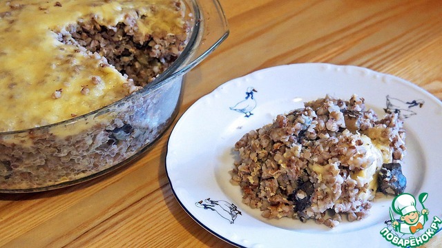 Хочу предложить Вам рецепт не сложной по ингредиентам и приготовлению запеканки, где главные герои - это гречка и грибы.