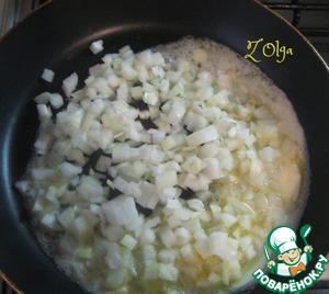 На сковороде растапливаем сливочное масло, добавляем лук и обжариваем до золотистости 5 минут.