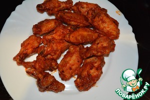 В оригинале жарят на арахисовом масле и используют соус наподобие Frank`s RedHot. Закуска к крыльям - нарезать сельдерей и плитки голубого сыра. (если не пьёте пиво)
