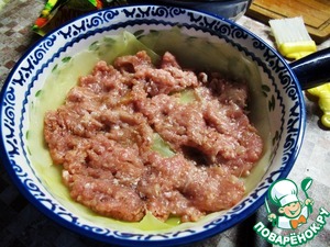 Жаропрочную посуду смазать маслом. Дно выложить капустными листьями. Сверху разровнять фарш, смазать майонезно-сметанным соусом. Повторить. Верхний слой - капустные листья. -