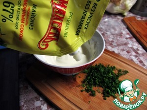 Приготовить соус для тушения. Для этого смешать майонез, сметану, томатную пасту и нарубленную зелень. Натереть сыр.