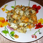 Индейку, у меня была грудка от своей, домашней индюшки. Она была очень большая, весом 15 кг., прям страус!!!