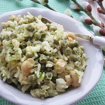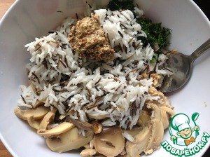 Добавить готовый рис, горчицу, масло, соль и перец. Аккуратно перемешать.