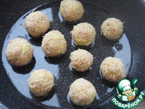 Сформировать из кабачковой массы шарики и обжарить их в оливковом масле на сильном огне.