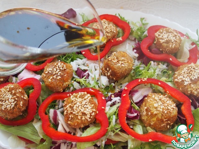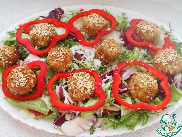 Рецепт «Овощной салат с ароматным рисом и шариками из кабачков»: