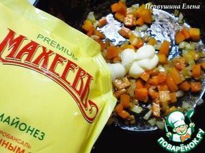 Добавить майонез и немного воды (бульона) и потушить до мягкости.