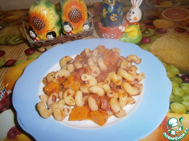 Рецепт «Макароны с тыквенным соусом и помидором»: