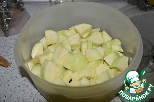 Кабачок помыть, отчистить от кожуры и нарезать кусочками